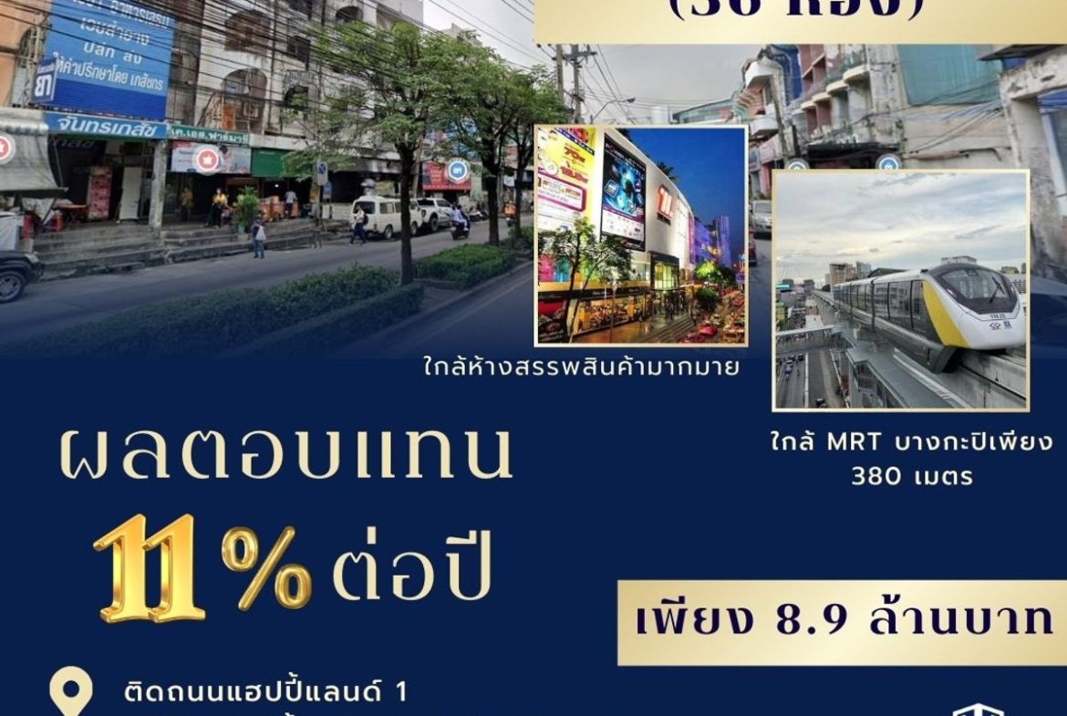 PZ1180- ขายหอพัก 6 ชั้น ผลตอบแทน 9.5% ต่อปี ติดถนน แฮปปี้แลนด์ 1 ห่างจากถนนลาดพร้าว 135 เมตร ใกล้ MRT บางกะปิเพียง 380 เมตร ใกล้ห้างสรรพสินค้า มากมาย แขวงคลองจั่น เขตบางกะปิ กรุงเทพ